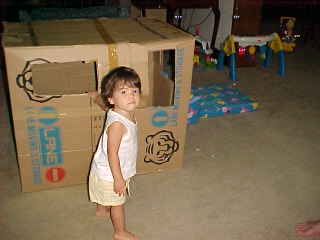 Luna's grown! Luna showing off the "house" Mama made for her.